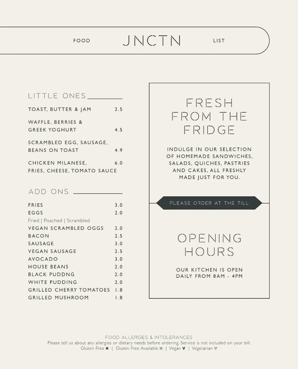 Welcome to JNCTN, a delightful culinary haven located at 14 Foregate St, Worcester. This vibrant spot is making waves with its diverse brunch menu and an array of delectable options for breakfast and lunch. Customers rave about their experiences, highlighting the fantastic vegan breakfast that features a stunning tofu dish paired with a flavorful shallot and herb hash brown.